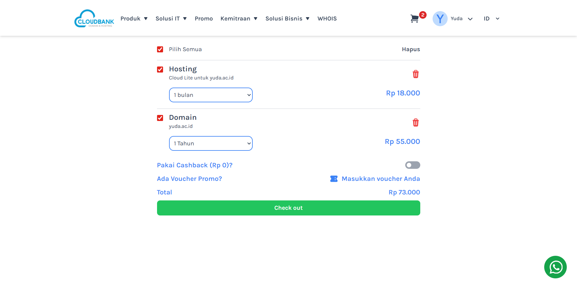 1. Setelah memilih paket hosting, Anda akan diarahkan untuk melakukan pembayaran.