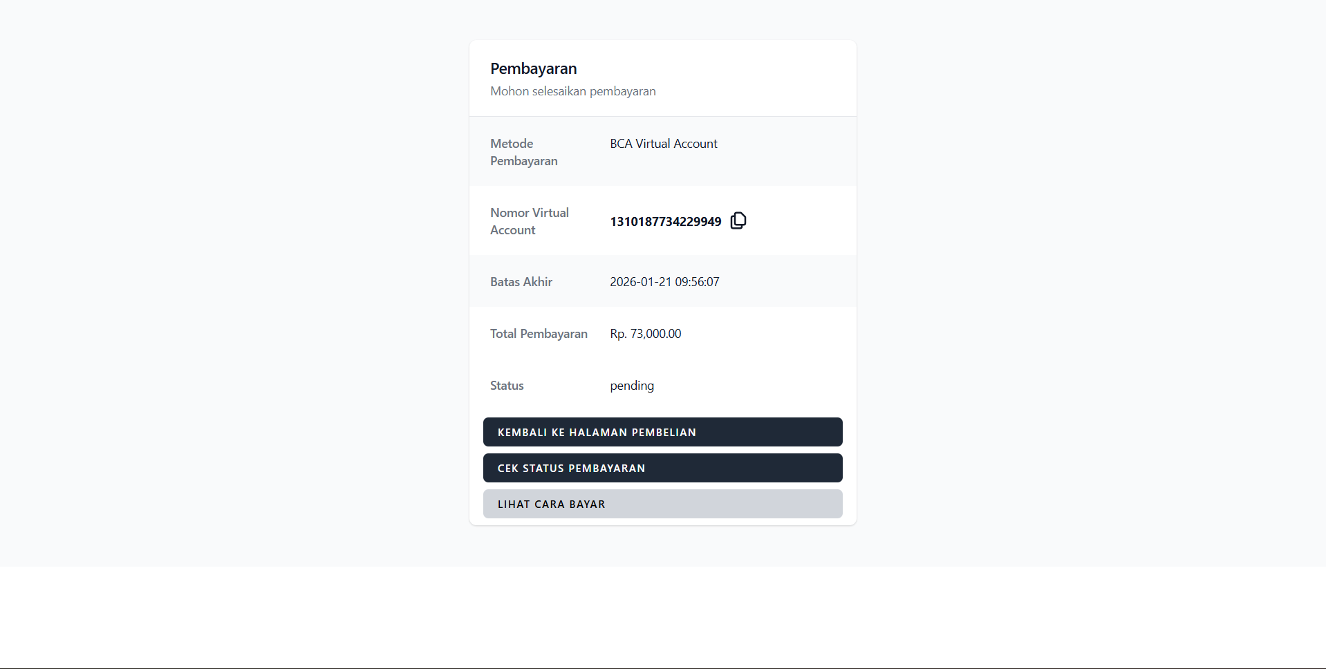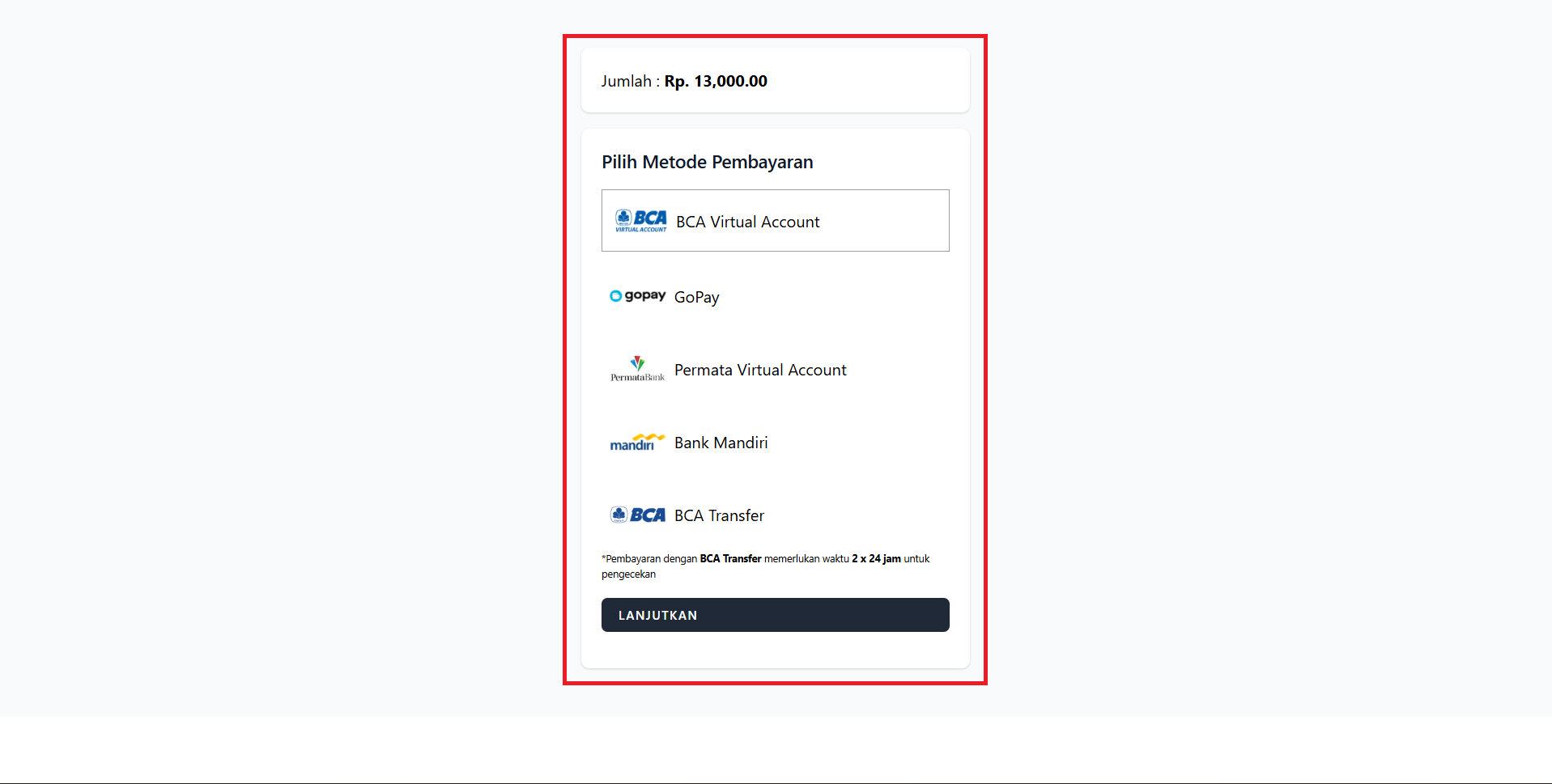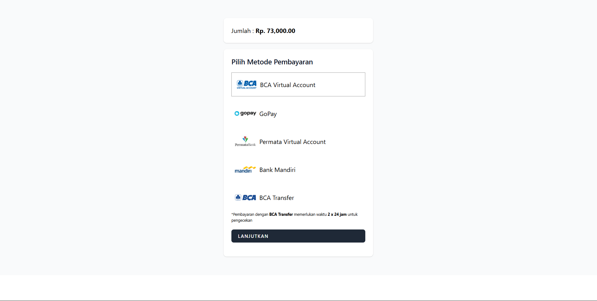 1. Proses pembayaran dapat dilakukan dengan berbagai metode yang disediakan, seperti transfer bank atau pembayaran digital.