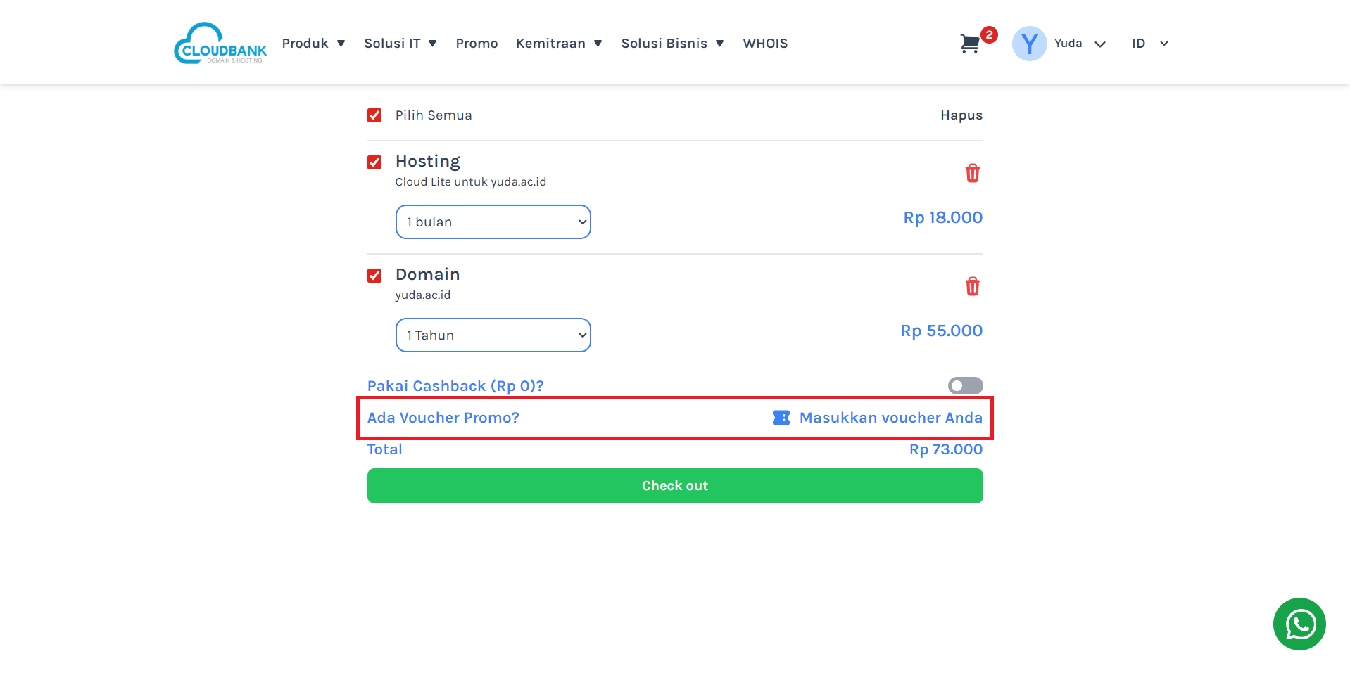 2. Sebelum melanjutkan ke pembayaran, Anda dapat memasukkan voucher promo yang Anda miliki dengan mengikuti langkah-langkah berikut: