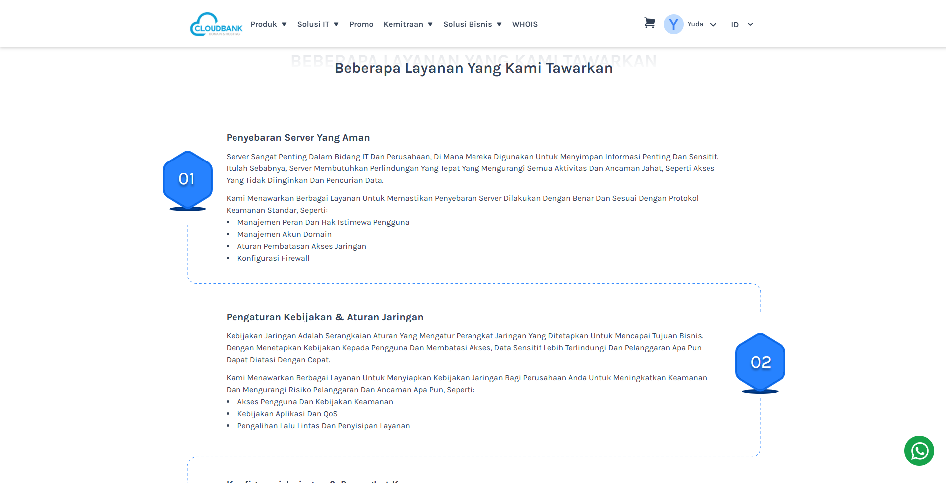Halaman ini memberikan panduan lengkap tentang cara menggunakan layanan IT Solutions yang disediakan oleh Cloudbank. Layanan ini mencakup berbagai solusi teknologi untuk mendukung kebutuhan bisnis Anda, seperti Server Managed Services, Email Premium, dan Network Setup.